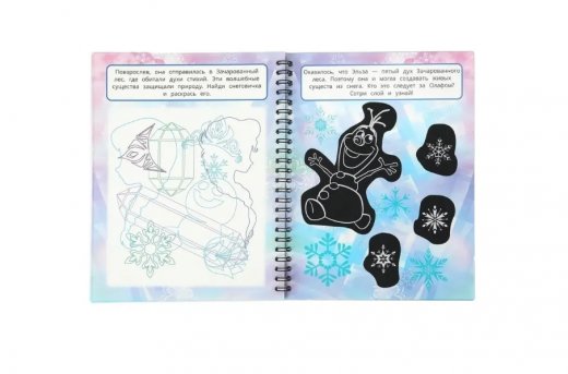 Данное издание представляет собой блокнот на пружинке с красивыми гравюрами и занимательными заданиями. Если провести с помощью волшебной палочки по стираемому слою на специальной странице с черным фоном, то на ней проявится рисунок, который можно заштриховать, заполнить его контур, провести отдельные линии. В итоге получится картинка с милыми цветными персонажами. Следуйте за своей фантазией и создавайте потрясающие шедевры!