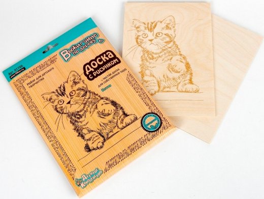 Купить Выжигание по дереву Котик+чистая доска для собственных идей в Новосибирске Вы можете в магазине развивающих и настольных игр "Игры Почемучек"