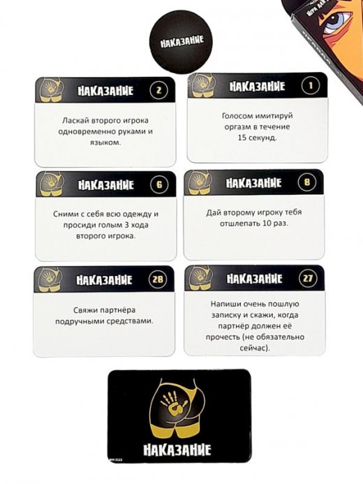 Игра, которая разнообразит вашу сексуальную жизнь! Нужно всего лишь подбросить фишку и вытянуть карту из той колоды, на которую укажет фишка, а после выполнить задание. Эта игра создана для парочек, которые ищут что-то новенькое в совместном времяпрепровождении.