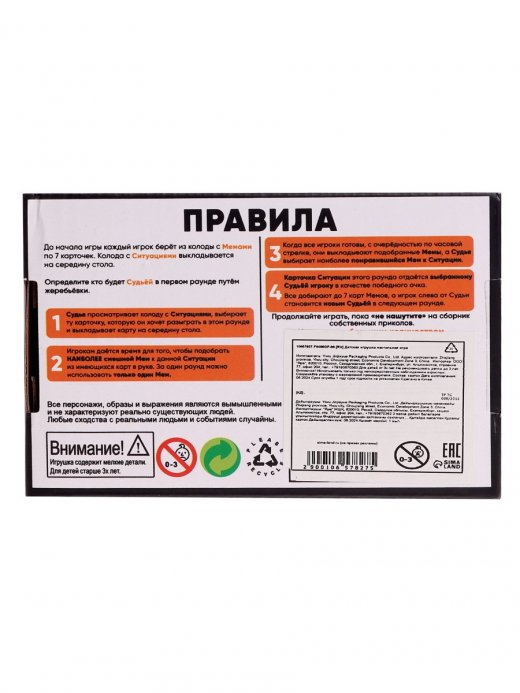 В наборе 600 карточек — 400 с мемами и 200 с ситуациями, обеспечивающих множество уникальных комбинаций.
