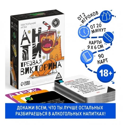 Купить настольную игру Антитрезвая викторина 18+ в Новосибирске Вы можете в магазине развивающих и настольных игр "Игры Почемучек".
