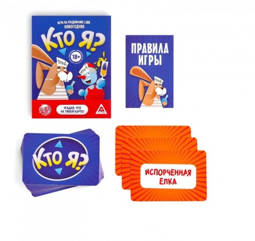 Угадайте, кем вы будете в этот Новый год! В весёлой игре вам предстоит угадывать, что написано на вашей карточке. Главное, помните, что все слова так или иначе связаны с Новым годом и предназначены для взрослой компании. Раздавайте карточки, задавайте вопросы и побеждайте! Как играть Чтобы узнать слово на своей карте, участникам предстоит по очереди задавать только такие вопросы, на которые ответом будет лишь «да» или «нет». Как только игрок отгадает то, что написано на его карте, он оставляет её себе и берёт новую. Так игра длится до тех пор, пока колода не кончится. После этого нужно подсчитать, сколько карт вы собрали. У кого больше, тот и победил! Внутри вы найдёте: 50 карточек; правила. Новый год пройдет на ура, если такая есть игра!