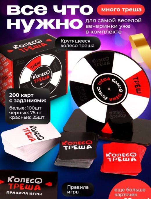 Настольная игра для компании взрослых Колесо Треша это эксклюзивный игровой набор для вечеринок.