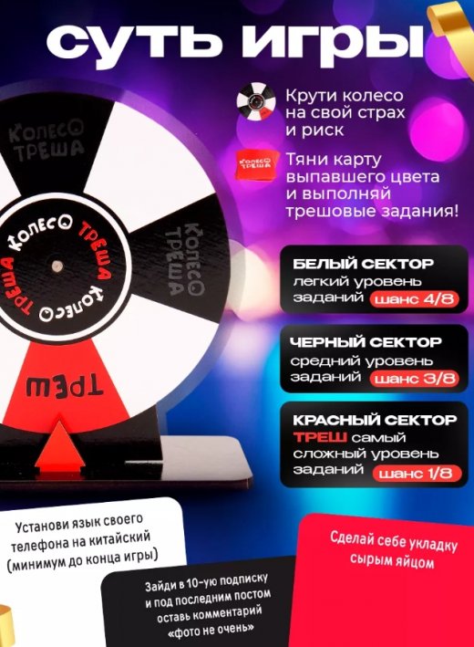 Оставить свой отзыв о настольной игре Колесо треша 18+ (понравилось/не понравилось и почему) Вы можете чуть ниже в разделе Отзывы