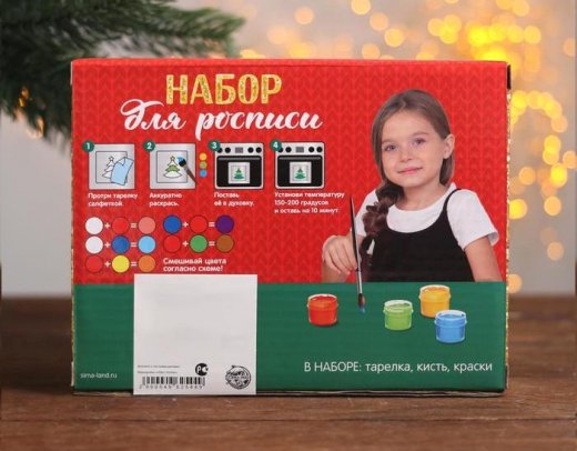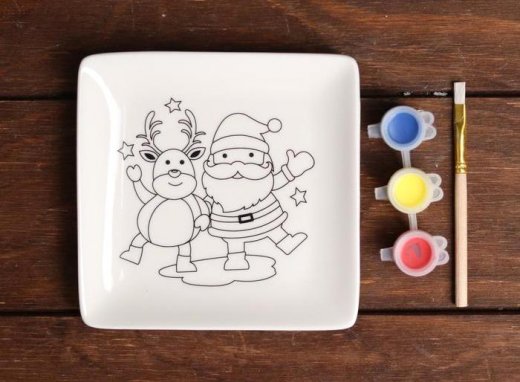 Состав набора: керамическая тарелка размером 12х12 см, краски акриловые, кисть.