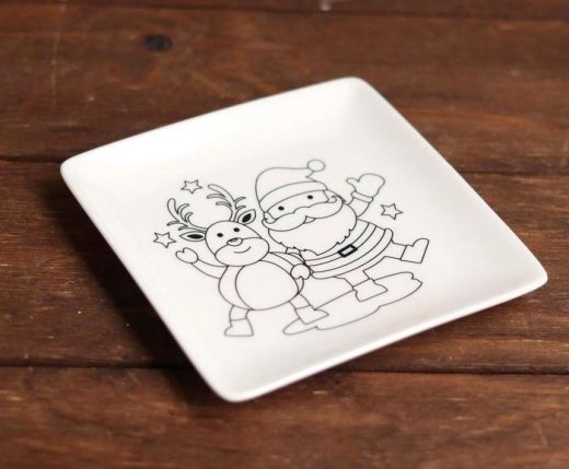 Набор для росписи Тарелка Олень и Дед Мороз станет творческим развлечением для маленького непоседы, а готовое изделие будет иметь уникальный авторский рисунок. На тарелке нанесены контуры будущего изображения, которые крохе предстоит заполнить акриловыми красками. После высыхания они хорошо держатся на керамической поверхности, так что изделие можно будет мочить и даже разогревать в микроволновой печи. Посуду с нанесёнными рисунками рекомендуется мыть вручную с использованием щадящих средств и мягкой губки.