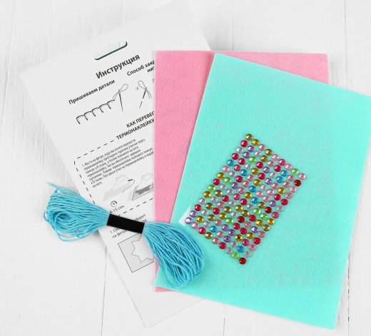 Состав набора: фетр, нити мулине, шаблон, стразы, термопринт, мастер-класс.