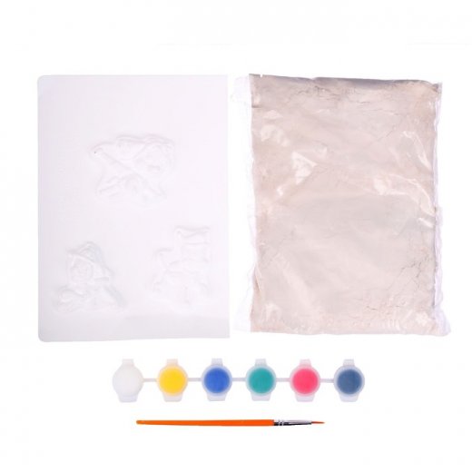 Комплектация: Гипс 200гр, форма для 3 магнитов, магнитная лента, краска, кисть, инструкция.