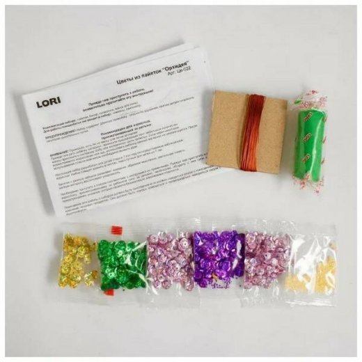 В комплекте: бисер. пайетки. проволока. пластичная масса. инструкция.