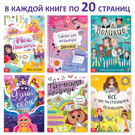Набор книг для девочек содержит в себе 6 изданий различной тематики: