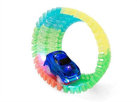 Magic Tracks - это большая гибкая гоночная трасса, которую нужно собрать самостоятельно! Все детали из набора состыкуются с другими треками серии Magic Tracks. Также в наборе есть светящийся скоростной автомобиль! Гоночные машинки, оснащенные яркими светодиодами, гоняют не только по собранному треку, но и по любой поверхности. Для машинки нужны батарейки пальчиковые АА.