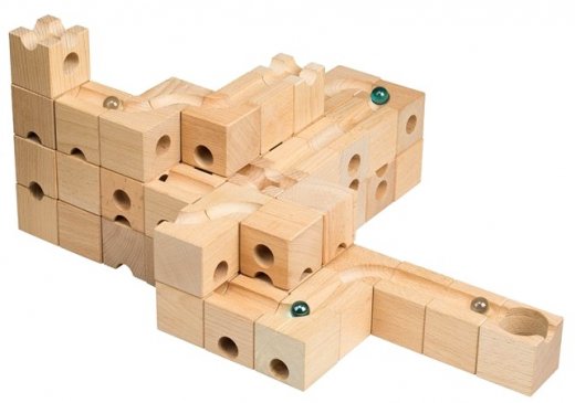 Конструктор деревянный Шарики-кубарики - состоит из 60 кубиков. Кубики с желобками и отверстиями одного диаметра и 5 разноцветных стеклянных шариков чуть меньшего диаметра. Выберите этот набор, если хотите для начала опробовать игру с конструктором, либо если подбираете его для детей помладше. В дальнейшем вы всегда сможете дополнить его деталями из других наборов этой серии, ведь все они прекрасно сочетаются друг с другом. Ведь чем больше деталей - тем длиннее и запутаннее получатся ваши лабиринты!
