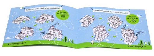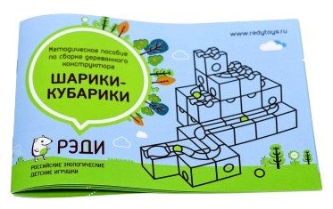 Состав набора: 60 деталей конструктора, 5 стеклянных шариков и буклет-инструкция с вариантами построек.
