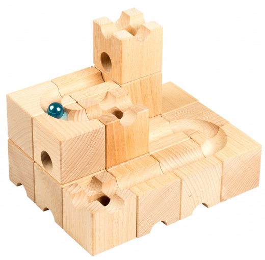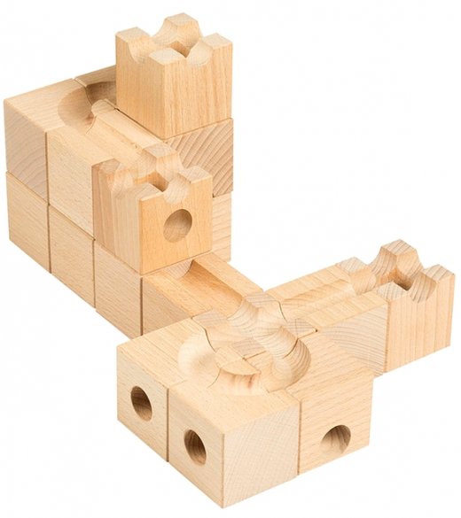 Конструктор деревянный Шарики-кубарики Стартовый – состоит из 18 кубиков. Кубики с желобками и отверстиями одного диаметра и 5 разноцветных стеклянных шариков чуть меньшего диаметра. Выберите этот набор, если хотите для начала опробовать игру с конструктором, либо если подбираете его для детей помладше. В дальнейшем вы всегда сможете дополнить его деталями из других наборов этой серии, ведь все они прекрасно сочетаются друг с другом. Ведь чем больше деталей - тем длиннее и запутаннее получатся ваши лабиринты!