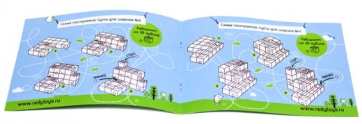 Состав набора: 18 деталей конструктора, 5 стеклянных шариков и буклет-инструкция с вариантами построек.