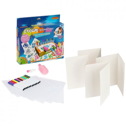 Купить Дующие фломастеры Обитатели морей 12 цветов в Новосибирске Вы можете в магазине развивающих и настольных игр "Игры Почемучек"