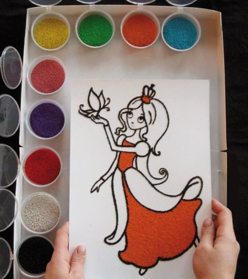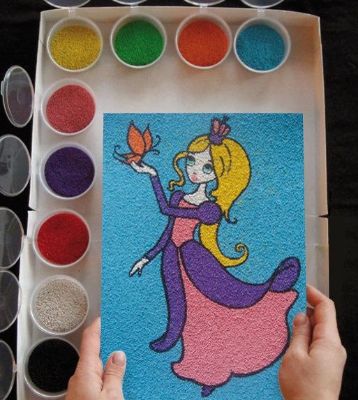 Песочная картина "Принцесса" - это занимательная раскраска цветным песком для детей.