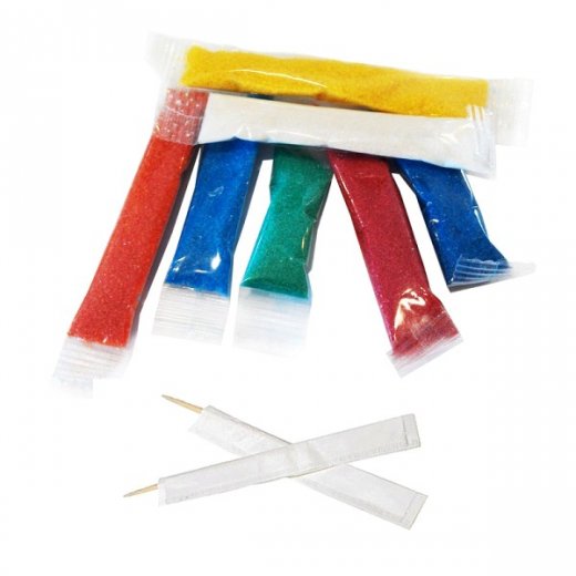 Состав набора: трафарет с клеевой основой, деревянная палочка, цветной песок, картонная рамка под дерево.
