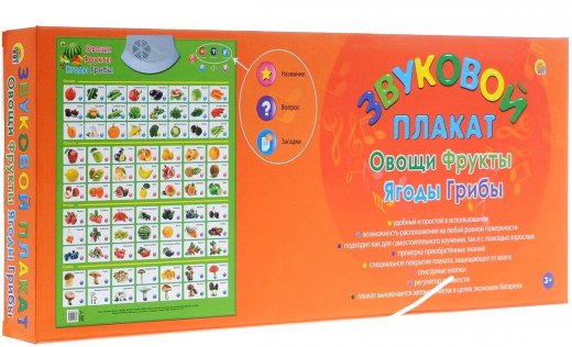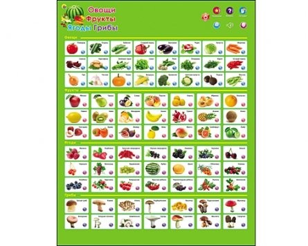 Купить Звуковой плакат Овощи Фрукты Ягоды Грибы в Новосибирске Вы можете в магазине развивающих и настольных игр "Игры Почемучек"