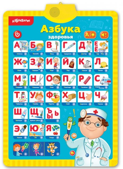 Плакат Мое тело – это двусторонний говорящий плакат, который станет незаменимым помощником родителей! На первой стороне плаката представлены интересные факты о теле человека и изображены самые важные органы, на второй – говорящая азбука, слова и полезные советы! Плакат можно повесить на стену или играть с ним, где будет удобнее. Громкость звука регулируется.