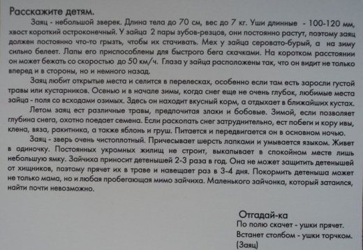 изображено животное, а на обратной стороне дано его описание: внешний вид,