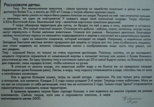 изображениями животных Азии с одной стороны и подсказками-шпаргалками – с