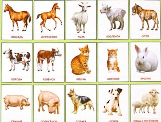 Демонстрационные карточки Познавательное и речевое развитие Домашние животные – универсальное наглядное пособие. Его можно использовать на любых занятиях, в играх, самостоятельной деятельности детей. К каждой предметной картинке прилагаются: - описание; - стихотворение; - загадка; - вопросы; - написание слова на русском и английском языках. Используя текст карточки и собственные знания, дети составляют рассказ с элементами описания. В наборе: Баран, Лошадь, Жеребёнок, Коза, Козлёнок, Осёл, Корова, Телёнок, Кошка, Котёнок, Кролик, Свинья, Поросёнок, Собака, Щенок, Овца с ягненком.
