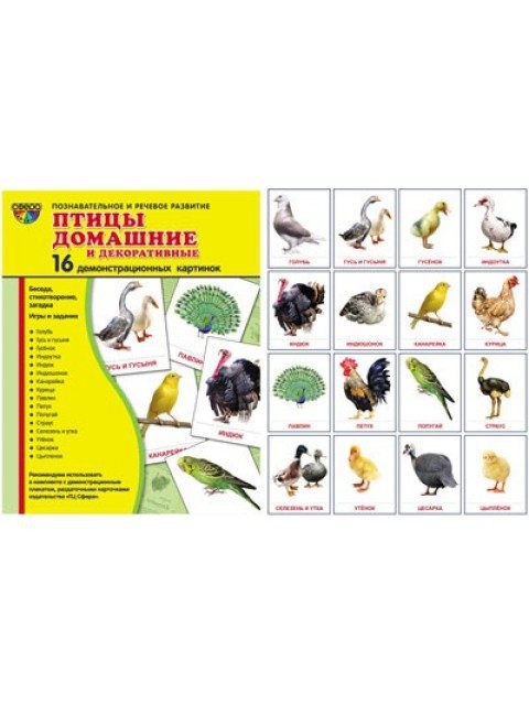 Купить карточки Познавательное и речевое развитие "Птицы домашние и декоративне 16 картинок" в Новосибирске Вы можете в магазине развивающих и настольных игр "Игры Почемучек".