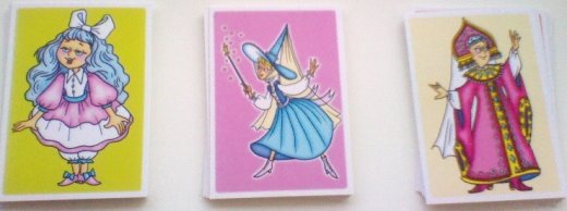 Сказочные гости: Игра развивает творческие способности ребенка, способствует его самораскрытию и самовыражению. Играть нужно в компании (например, если к вашему ребенку пришли гости). Попросите малышей представить, что ваш дом - это окно в волшебный мир, где каждый становится сказочным героем. Колода тасуется, и ребятам предлагается вытащить наугад карточку, а потом сыграть роль персонажа, который окажется на карточке. Можно предложить детям поприветствовать всех присутствующих, как этот герой, или рассказать историю своего визита, или станцевать или спеть за него.