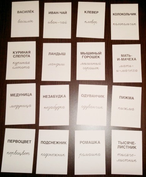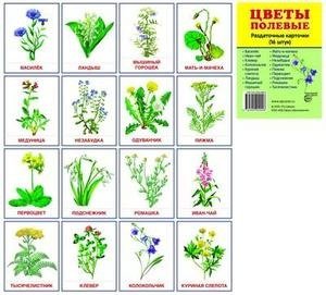 Купить Раздаточные карточки Цветы полевые 16 штук в Новосибирске Вы можете в магазине развивающих и настольных игр "Игры Почемучек"