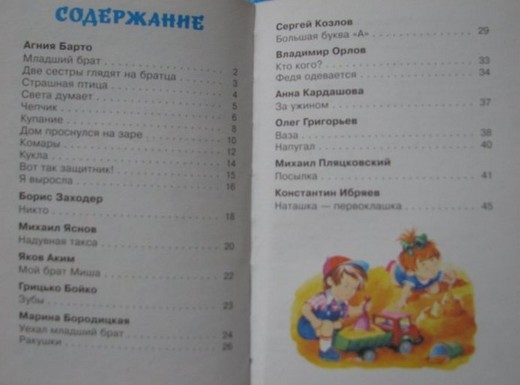 В сборник "Братики-сестрички" вошло более 20 стихотворений разных писателей: Агнии Барто, Бориса Заходера, Михаила Яснова, Якова Акима, Грицько Бойко, Марины Бородицкой, Сергея Козлова, Владимира Орлова, Анны Кардашовой, Олега Григорьева, Михаила Пляцковского и Константина Ибряева.