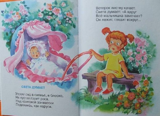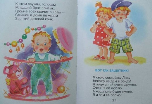 В книгу входят стихотворения для детей дошкольного и младшего школьного возраста поэтессы Агнии Барто: Бычок. Слон. Младший брат. Света думает. Погремушка. Разговор с мамой. Купание. Чепчик. Дом проснулся на заре. Вот так защитник! Верёвочка. Птенцы. Я думал, взрослые не врут. Маляр. Капризные ерши. Любитель-рыболов.