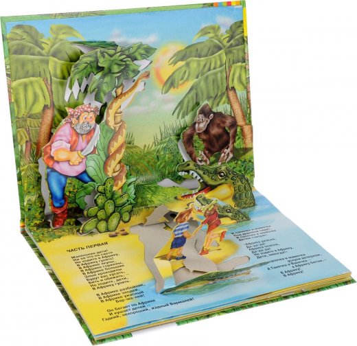 Книга-панорамка — это настоящий миниатюрный театр с персонажами, которые оживают, когда вы перелистываете страницу за страницей! Книга с добрым и веселым сюжетом, автором которой является Корней Чуковский, повествует о Бармалее и приключениях в Африке. Красочные иллюстрации и объемные фигурки перенесут вас в мир сказочного сюжета и вызовут самые искренние и радостные эмоции!