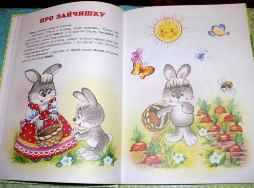 Наши милые малыши не устают удивлять нас своим стремлением познавать как можно больше. Иной карапуз, едва научившись говорить, бойко считает до 5-7, а то и до 10. Механическое запоминание порядка счета сродни запоминанию незатейливых стишков. Не спешите с этим. На первых порах познакомьте малыша с такими базисными категориями, как часть и целое. (Конечно, в терминах, понятных ребенку: один, мало, много.) А наши истории о лесных зверятах станут ему хорошим подспорьем в речевых и математических занятиях. Сюжеты первой истории помогут малышу осознать, что значит много (стая птичек из книжки) и ни одной (птички улетели); научат его проводить сравнение: много - мало, много - один (грибы, грибок). Проверьте, все ли усвоил, понял ваш малыш.