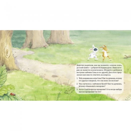 Это не просто великолепно иллюстрированные истории про непоседливого зайку и его друзей для семейного чтения, но и материал для беседы, "что такое хорошо и что такое плохо". В конце книги предлагаются вопросы, составленные детским педагогом-психологом для обсуждения с ребёнком.