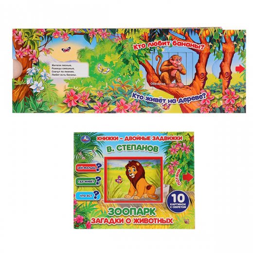 Книжки-двойные задвижки В.Степанова "Зоопарк. Загадки о животных" содержат много веселых стихов-загадок Владимира Степанова о животных жарких стран. А отгадки прячутся от малыша. Ищите ответы самостоятельно, открывая секретные картинки!