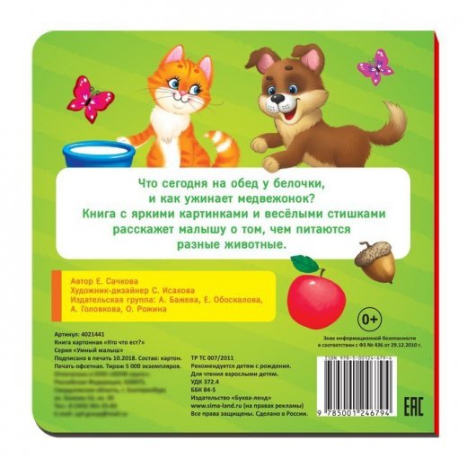 Купить книга картонная "Кто что ест?" в Новосибирске Вы можете в магазине развивающих и настольных игр "Игры Почемучек".