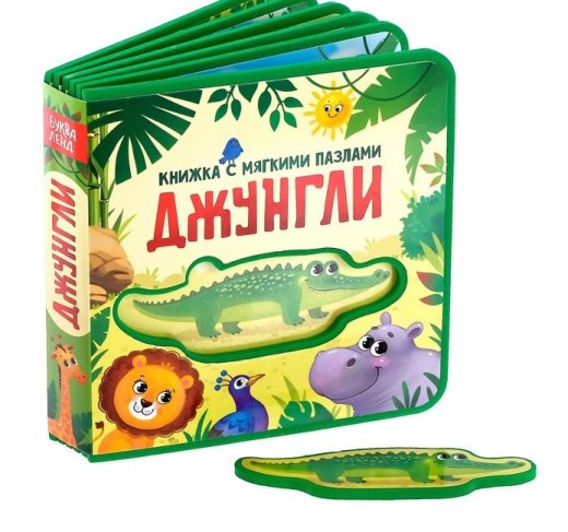 Купить Книжка с мягкими пазлами Джунгли в Новосибирске Вы можете в магазине развивающих и настольных игр "Игры Почемучек".