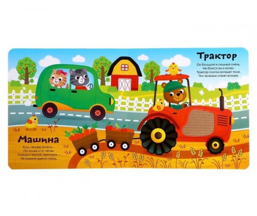 Каждый разворот книги оснащён специальной вставкой, которая привлечёт внимание ребёнка и познакомит его с разными видами транспорта.