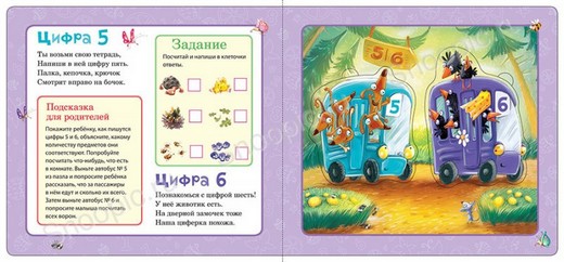 На заднюю сторону деталей с автобусами вы можете прикрепить магнит и играть с ними на холодильнике или магнитной доске. Читайте стихи, выполняйте инструкции, указанные на страницах книги, и ваш малыш с удовольствием будет изучать цифры, играть и развиваться!