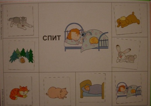 -простая ассоциация "картинка" - "действие" поможет легко научиться соотносить объект и его действие;