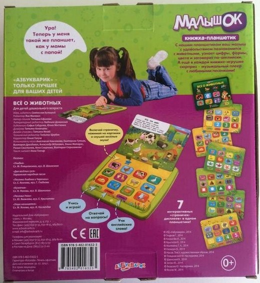 Ваш ребенок мечтает о планшете? Купите ему книжку-планшетик "Все о животных" Малышок! С современной говорящей игрушкой-планшетиком ребенок получит необходимые знания через игру.