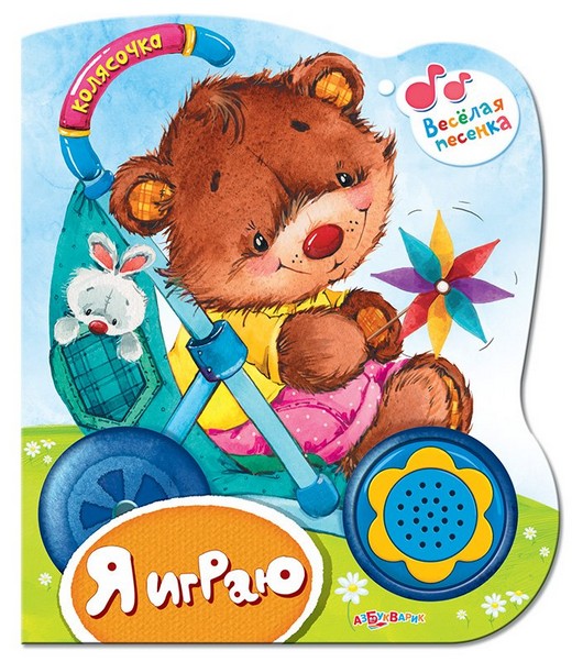 Небольшие стихотворения про игрушки Агнии Барто, Валентины Берестовой, Владимира Степанова и Валерии Зубковой иллюстрированные красочными рисунками располагаются на страницах книжки-вырубки "Я играю".
