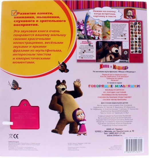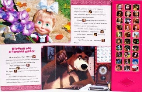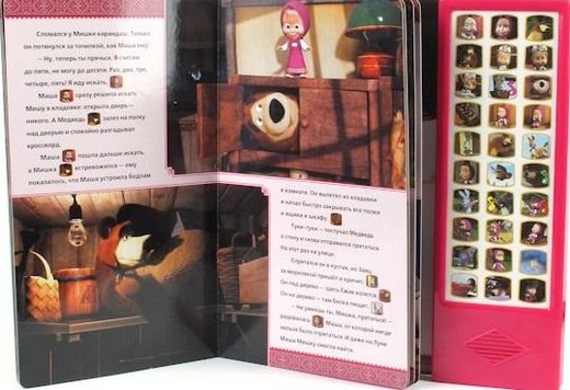 Книга "Маша и Медведь. Любимые истории" понравится каждому поклоннику известного мультсериала, ведь их ждут приключения с давно полюбившимися персонажами. В этой книге собраны лучшие истории, поэтому вы можете быть уверены, что ваша крошка будет от книжки в восторге. В книге имеется встроенный модуль с изображением сценок из мультиков, нажимая на них ребенок будет слушать песенки или фразы из мультфильма. Подобные интерактивные моменты всегда пробуждают интерес к чтению и увеличивают общее время, проведенное малышом вместе с книжкой. А ведь все мы знаем, как порой сложно увлечь крошку чтением.