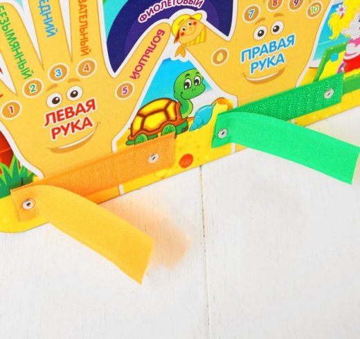 Бизиборд – это популярная многофункциональная развивающая игрушка. Бизиборд «Право-лево» заменяет сразу несколько игр: Играйте в прятки с обезьянкой, которая скрывается на пальме за фетровой шторкой. Зеленый попугай наблюдает, как ребенок справляется со шнуровкой, для этого есть металлические крепления и яркий шнурок. С веселой черепахой можно изучать цвета радуги. Две веселые ладошки, которые имеют размер детской ручки, знакомят с понятием право-лево, с названием каждого пальца и счетом в пределах 10. Шестеренка-солнышко развивает мелкую моторику. Предложите ребенку крутить шестеренку каждым пальцем по очереди. Липучки учат детские ручки застегивать, расстегивать. Игры и занятия с Бизибордом развивают мышление, память, воображение, стимулируют мелкую моторику и координацию движения. В процессе игры у ребенка формируются причинно-следственные связи, развивается самостоятельность и познавательная активность. Бизиборд займет ребенка на продолжительное время и принесет массу положительных эмоций.