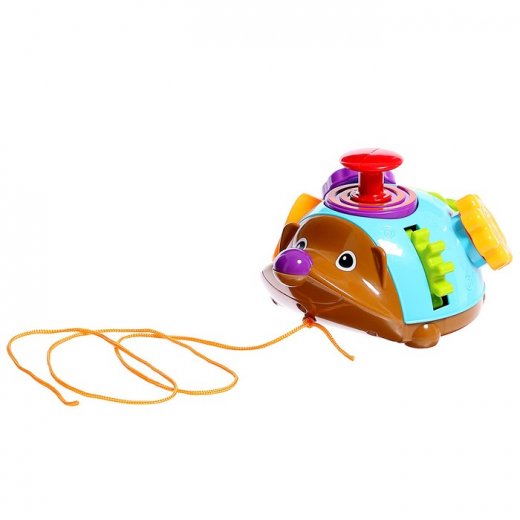 Ёжик на четырех меленьких колёсиках , все фигуры на туловище подвижные.