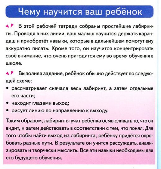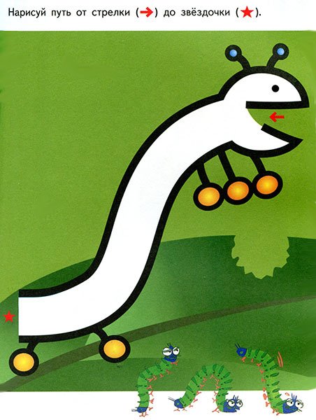 В ней собраны простейшие лабиринты, рисуя в которых ребёнок научится держать карандаш и уверенно проводить линии.