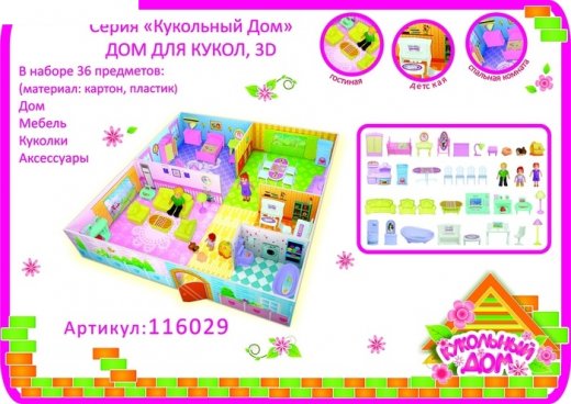 Кукольный дом с мебелью – это очень интересный и занимательный подарок для девочки. Шикарный дом для маленьких кукол привлечет внимание вашей малышки и не позволит ей скучать. Замечательный набор включает в себя 36 предметов (дом, мебель, куколки, аксессуары) – это прекрасная возможность дать Вашему ребенку придумать сюжет своих игр, почувствовать себя маленькой хозяйкой. Для игры необходимо собрать дом, используя пластиковые элементы, входящие в набор, а затем обустроить его и обставить яркой и функциональной мебелью.