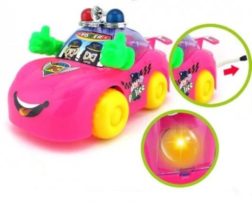Машинка со шнурком – это маленькая копия настоящей машины, выполненная в забавном мультяшном дизайне. Яркая расцветка, веселый дизайн игрушки привлекают внимание. Если вытянуть шнурок, держа машинку, то она поедет и поедет очень быстро! Так как машинка служебная ребенок может играть с ней, ловя преступников, а может просто гонять ее по дому и барьерам.