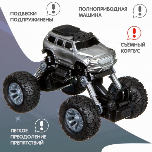Купить Внедорожник монстр Джип на пружинной подвеске Серый Bondibon в Новосибирске Вы можете в магазине развивающих и настольных игр "Игры Почемучек"